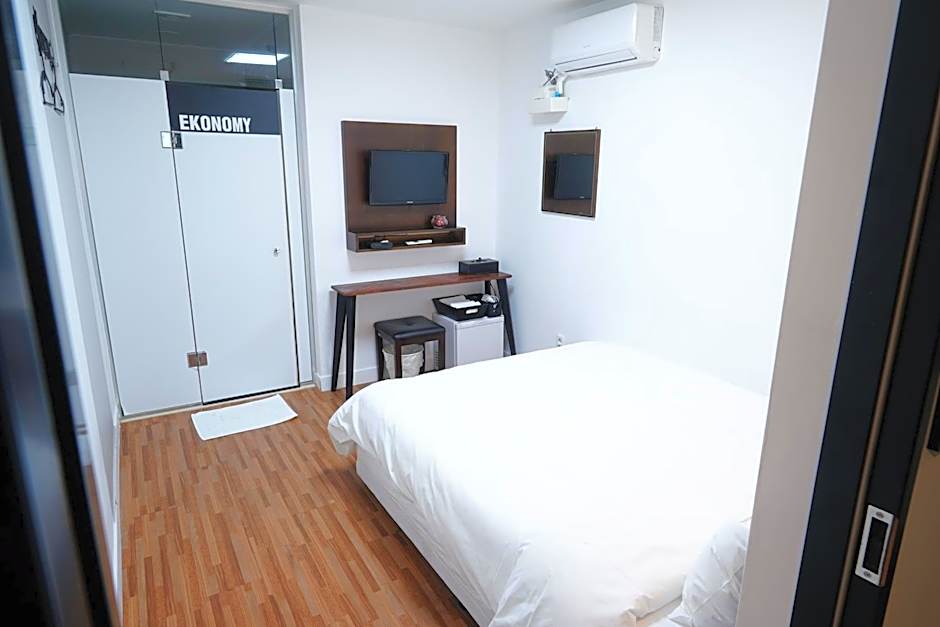 This single room has a private entrance, seating area and air conditioning. This room has no window.